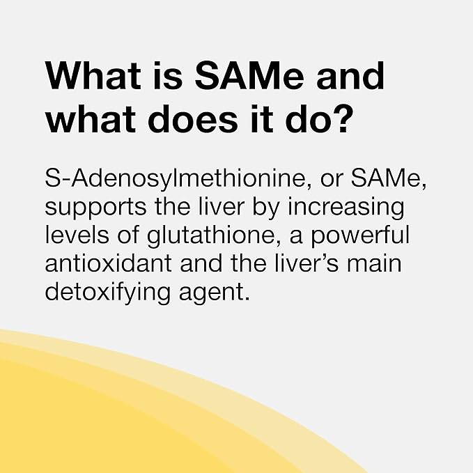 - Liver Support: Denosyl features s-adenosylmethionine (SAMe) to support the liver by increasing levels of glutathione, an important antioxidant for liver health and the liver's main detoxifier
