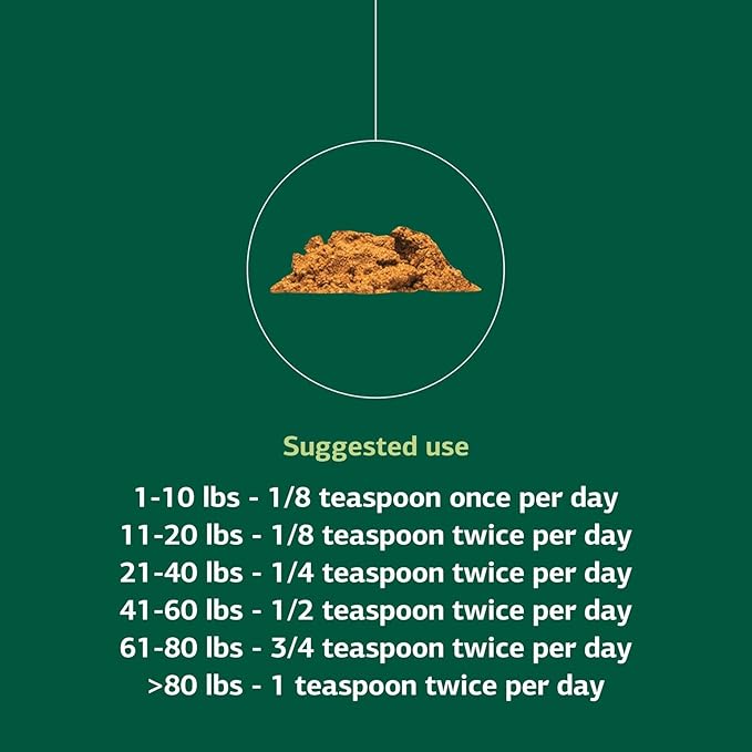 - Supplement Measurement & Dosing: Includes a 1/8 teaspoon scoop for small bottles and a 1/2 teaspoon scoop for large bottles for an accurate dosage based on your dog's weight