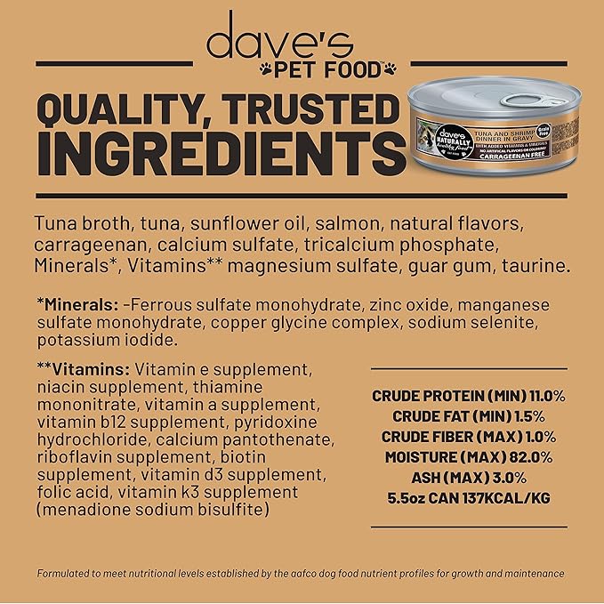 Dave's Pet Food Grain Free Wet Cat Food Gravy (Tuna & Shrimp Dinner in Gravy), Naturally Healthy Canned, Added Vitamins, 5.5 oz Cans (24 Pack)
