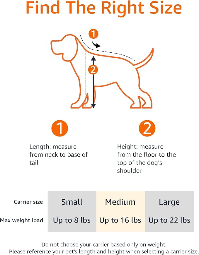 - Dimensions: 20 x 12 x 12 inches (LxWxH); recommended max weight of 22 pounds, please measure pet's length (neck to base of tail) and height (floor to top of shoulder)