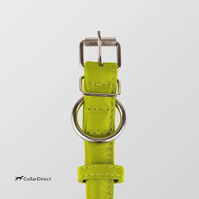 CollarDirect Rolled Leather Dog Collar, Soft Padded Round Puppy Collar, Handmade Genuine Leather Collar Dog Small Large Cat Collars 13 Colors (15-19 Inch, Lime Green Textured)