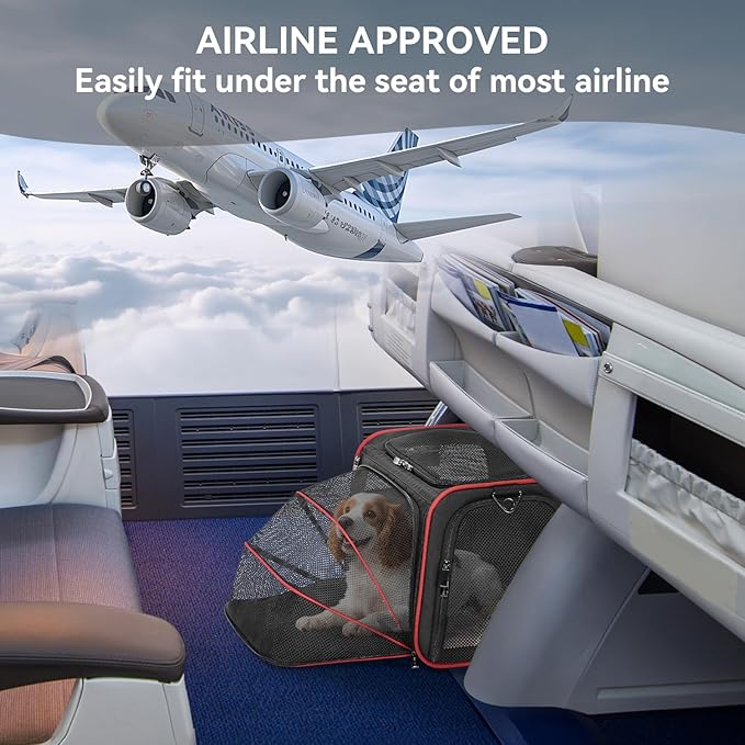 - 【COMFORTABLE SPACE】Extra extended space enable pets sprawl out, lay, see all around and relax when you have a flight trip, also works great in the car, roomy and they lay in it like a bed. Carrier can be folded totally flat when not in use.