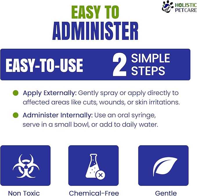 - COMPLETE CARE FOR HEALTH AND COMFORT: Holistic Pet Care Colloidal Silver supports your petโs strength against environmental challenges. Its skin-supporting properties help address irritations, wounds, and hotspots, promoting overall wellness to keep your furry friend feeling their best inside and out.