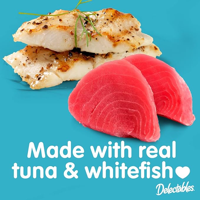 Hartz Delectables Chowder Lickable Wet Cat Treats for Kitten, Adult & Senior Cats, Tuna & Whitefish, 12 Count
