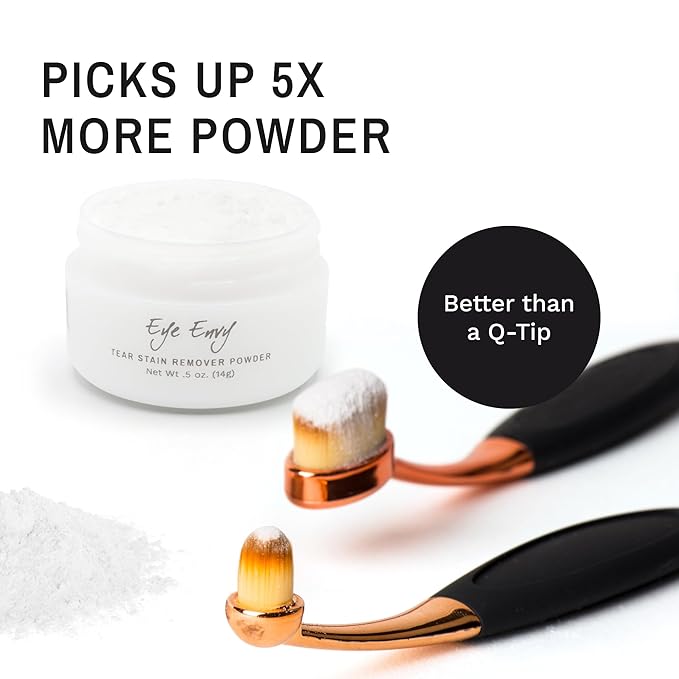 - USE WITH TEAR STAIN REMOVER POWDER: Created especially for the application of Eye Envy Tear Stain Remover Powder, this brush allows you to apply the powder lightly and evenly on your pet’s face.