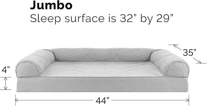 Furhaven Cooling Gel Dog Bed for Large Dogs w/ Removable Bolsters & Washable Cover, For Dogs Up to 95 lbs - Quilted Sofa - Silver Gray, Jumbo/XL