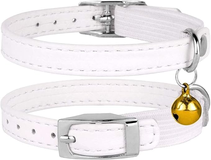 - Made out of soft genuine leather, this elegant collar for kittens is hand stitched to ensure youโre getting a long lasting good quality product. Elastic strap is designed to allow easy release in case your petโs collar snags on to something. Bright color will make your cat easy to spot and a metal bell will help you to keep monitor kittenโs whereabouts. It's safe and looks stylish!