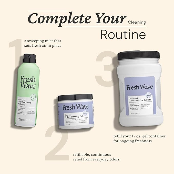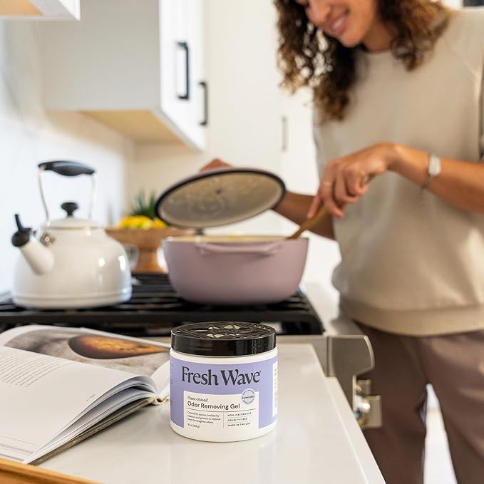 - LAVENDER ODOR ELIMINATOR FOR HOME: Fresh Wave Gel is an odor absorber and neutralizer for your kitchen, bathroom, garages, pet areas, car, or any other room. The lavender oil helps eliminate odors from cooking, trash, paint, common home odors, and more.