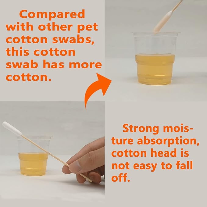 - [High-quality] Spiral cross-wound, to ensure that the cotton head will not fall off easily, the specially lengthened cotton head cannot pass through the dogโs ear canal, nor can it touch the deep part of the ear, safe for your puppy.