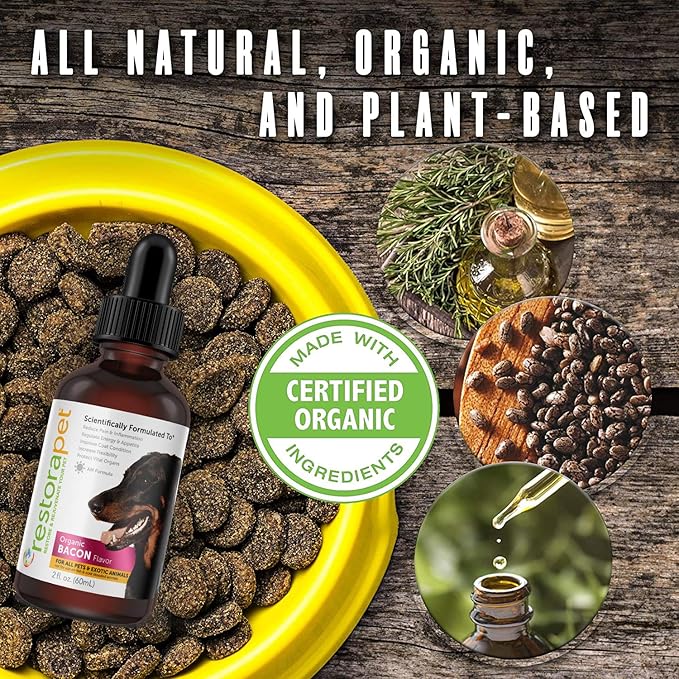 RestoraPet 2-Pack Dog & Cat Bacon Liquid Multivitamin | Dog Arthritis Pain Relief | Hip & Joint Vitamins for Dogs - Anti Inflammatory Supplement for Dogs & Cats | Organic & Non-GMO, Vet Approved