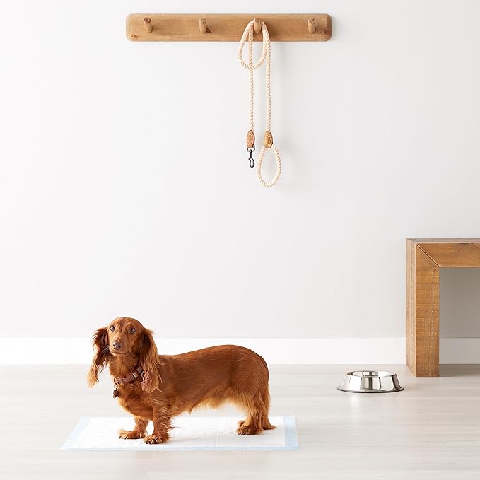 Amazon Basics Heavy Duty Dog and Puppy Pee Pads, 5-Layer Leak-Proof Ultra Absorbent, Quick-Dry Surface, Potty Training, Regular (24x23"), 80 Count, Blue & White
