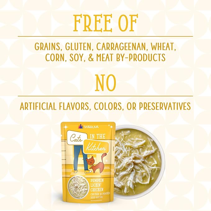 Weruva Cats in The Kitchen, Pumpkin Lickin' Chicken with Chicken Breast in Pumpkin Soup Cat Food, 3oz Pouch (Pack of 12)