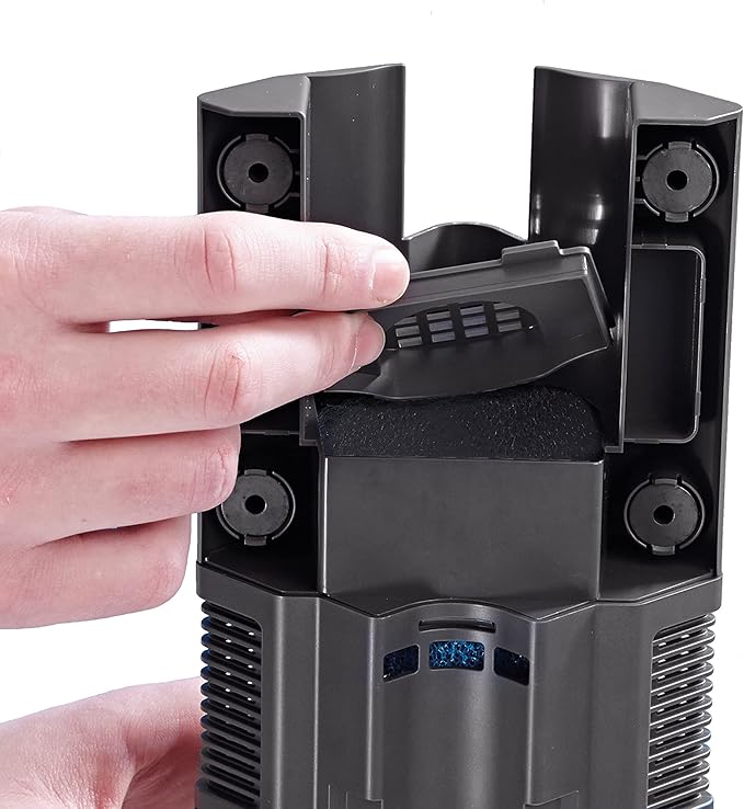 - Diffuser and adjustable water flow nozzle are built into the filter for uniform surface movement and additional dissolved oxygen