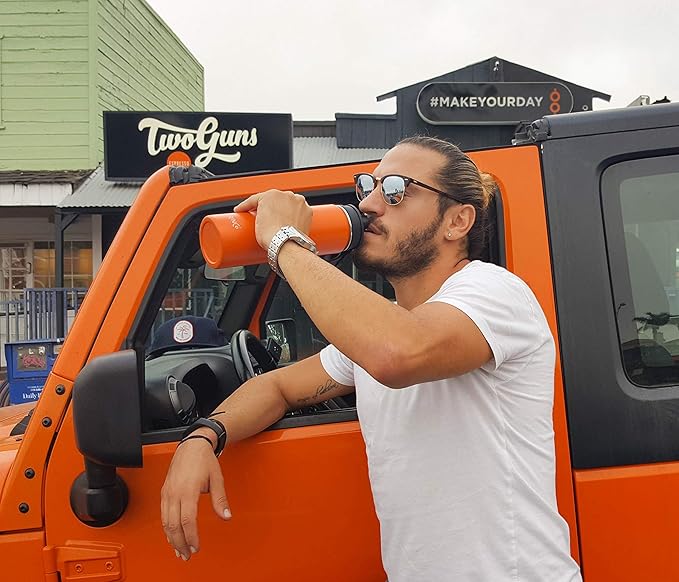 - β Compatible & User-Friendly: Our vacuum insulated water bottle is designed with a wide mouth simple modern silhouette and comes with a textured grip for sweat-free. It comes with a sport top which keeps your beverage safe and its compact shape fits into your hand.