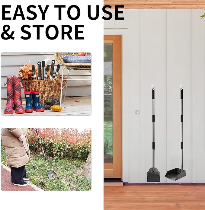 - 🐾NO BENDING: Both the tray and scoop of our dog accessories are 37.4 inches long, which provides a comfortable distance for cleaning up pet poop because you don't have to bend over. The dog poop scooper for yard keeps you energized throughout the day instead of being sore and tired.