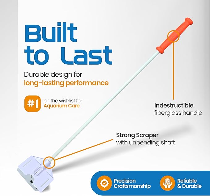 - Extended Reach: The long handle of this fish tank scraper helps you reach tough spots, making it an essential aquarium cleaning tool for deep maintenance.