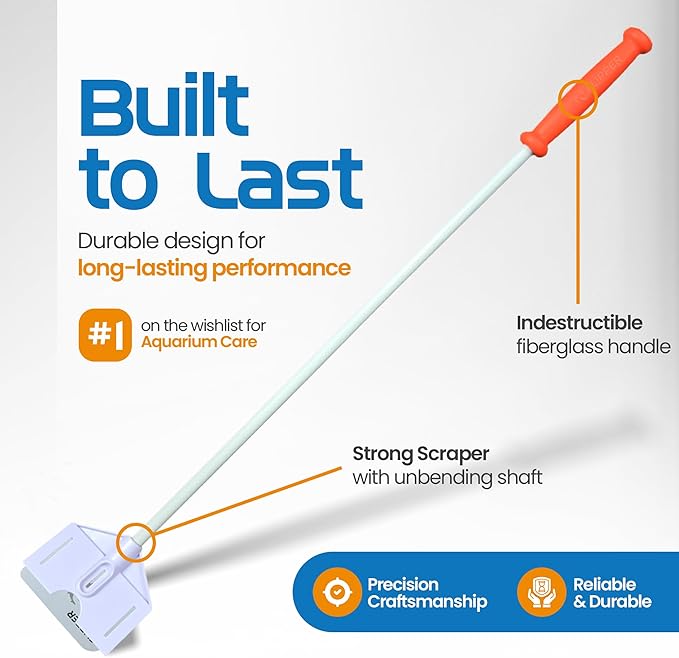 - Extended Reach: The long handle of this fish tank scraper helps you reach tough spots, making it an essential aquarium cleaning tool for deep maintenance.