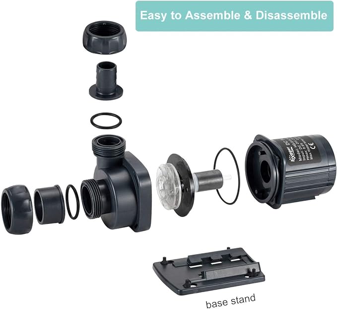 - 🐠【Internal & External Use】 Hygger dcp water pump can be ran externally or be submerged. Please note the controller is not waterproof, must be placed indoors.The water pump inlet and outlet ports with standar size threads, it comes with screws, o rings, pipe connection fittings.You can connect 1", 3/4", 1-1/2", 1-1/4" pipes to the pond pump
