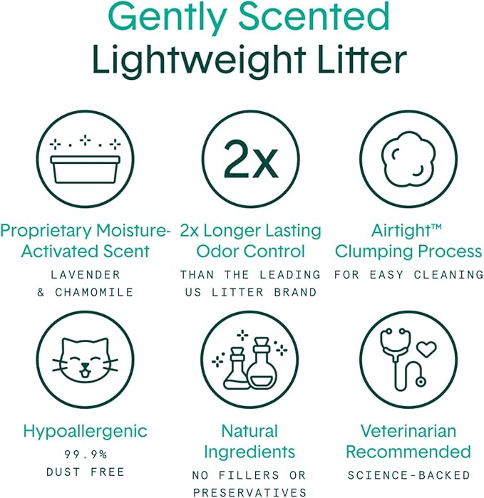- GUARANTEED ODOR CONTROL: Other scented products can be overpowering & stressful for catsโ sensitive sense of smell. Our moisture-activated scent is safe for cats & humans. 30-day odor control guarantee (2x longer than competitors). Eliminates ammonia odor