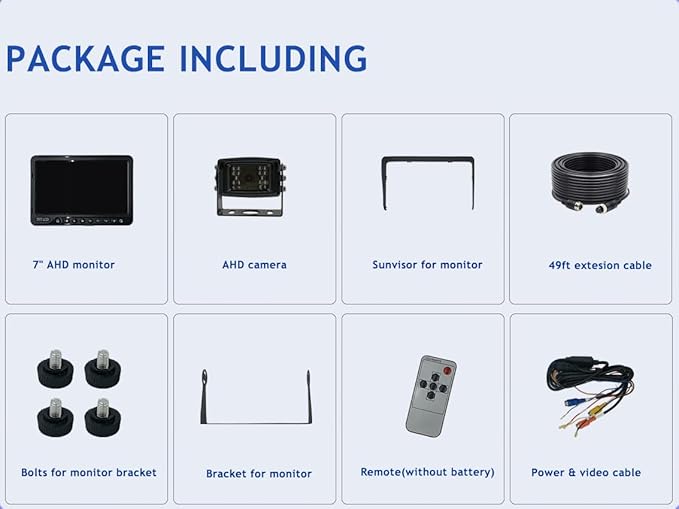 - [SINGLE VIEW MONITOR]A 7โ LCD AHD 1080P color monitor (NOT SPLIT SCREEN๏ผ so the full/split/quad view buttons don't work) with U-type metal bracket. This monitor is not waterproof. It is compatible with most of the vehicles with a free power input range DC10-36V and supports with max 3 cameras. TVS device is built in to protect the monitor from being damaged by the transient high power of vehicles. And this monitor only supplies camera which is in use with DC12V, it saves energy.