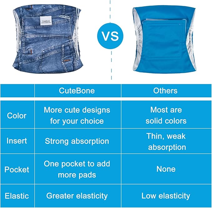 - CuteBone male dog diapers are designed with comfort and durability in mind, they’re perfect for untrained puppies and dog’s incontinent. These soft doggie diapers help your pet keep clean and dry between walks.