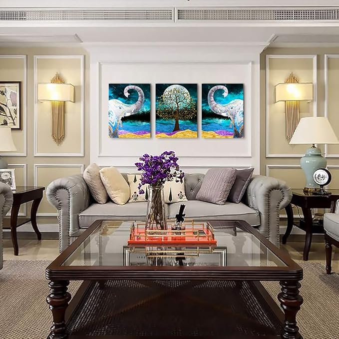 Canvas Wall Art for Living Room ,farmhouse bathroom Wall decor blue abstract Animal landscape painting,modern family kitchen Bedroom Decoration elephant Canvas art pictures Artwork for home walls