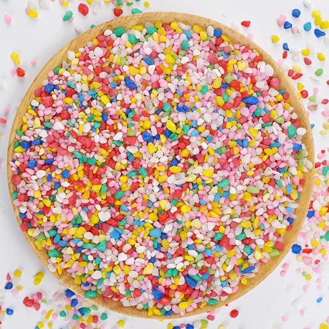 Mini Rainbow Confetti Gravel Pebbles Mix Colored Stones Aquarium Gravel Decorative Colored Garden Sand Succulent Cactus Bonsai Gritty Mix Rocks for Top Dressing, Landscaping, Home Decor 2.2 lbs