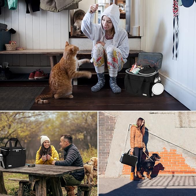 BAGLHER Dog Travel Bag Backpack Pet Supplies Backpack Pet Accessories Storage Bag 5-Piece Set with Shoulder Strap 2 Lined Pet Food Containers 4 Foldable Feeding Bowls Essential Kit for Pet Travel