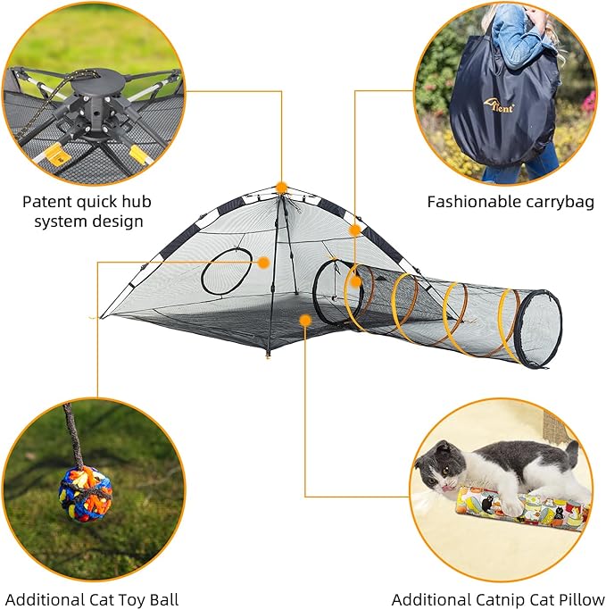 - INCLUDES ONE CAT TENT ,ONE CAT TUNNEL and ONE BALL (Random color) โ Includes one cat tent with too big zipper doors, one cat tunnel with a zippered door at both ends and one ball for cats to play. Cat tent and cat tunnel can be used together or separately.