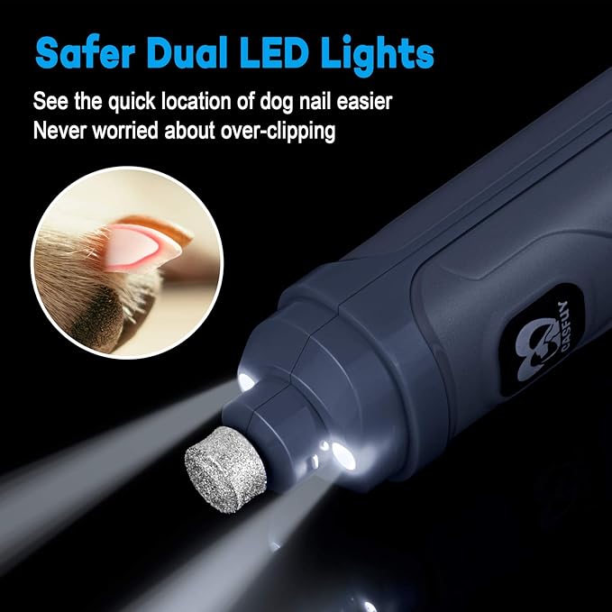 - Upgraded Dog Nail Trimmer with 2 LED Lights: Casfuy electric dog nail trimmer has 2 LED lights that allows you to see the location of dogโs quick easier. Avoiding over-grinding, causing less hurt to your furry friends. Dual LED lights is a new design, lights shine more accurately than other ordinary LED grinder.