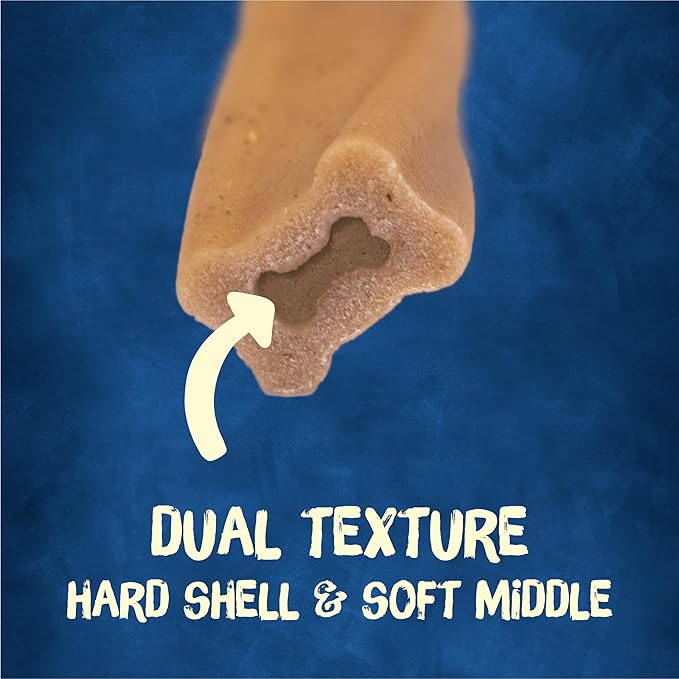 - Dual-textured dog bones for adult dogs with a hard shell and tasty middle