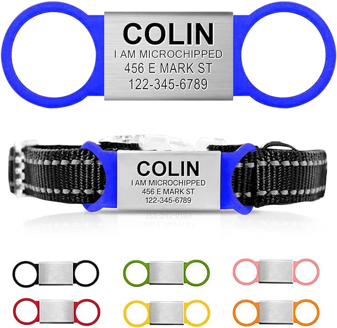 - 🐈 Laser Engraved Pet ID Tags: Rest assured, the laser engraved, clear text on your personalized dog collar tag or personalized cat collar tag will look great and will not fade. Attach your engraved pet tag to your pet's collar or harness.