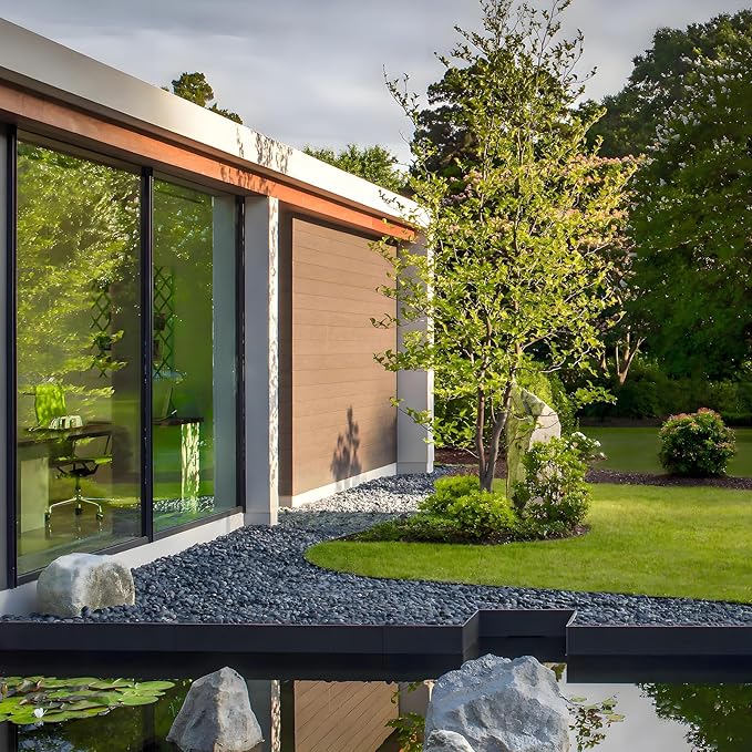 - 【D I Y Design】If you have a blank area on the edge of your terrace, you can cover it with black polished pebbles to look beautiful and high-end. Black pebbles are a great choice for creating amazing D I Y projects, perfect for people who like to personalize your work. If you have better ideas, please share with us