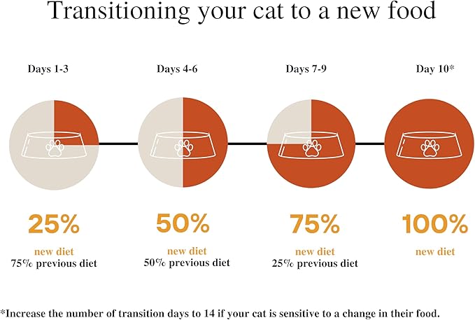 - TRANSITION GUIDANCE: For the best transition to Wonder Bound, mix a small amount of our food with your cat’s previous food over a period of 7-10 days, increasing the ratio of Wonder Bound to previous food each day