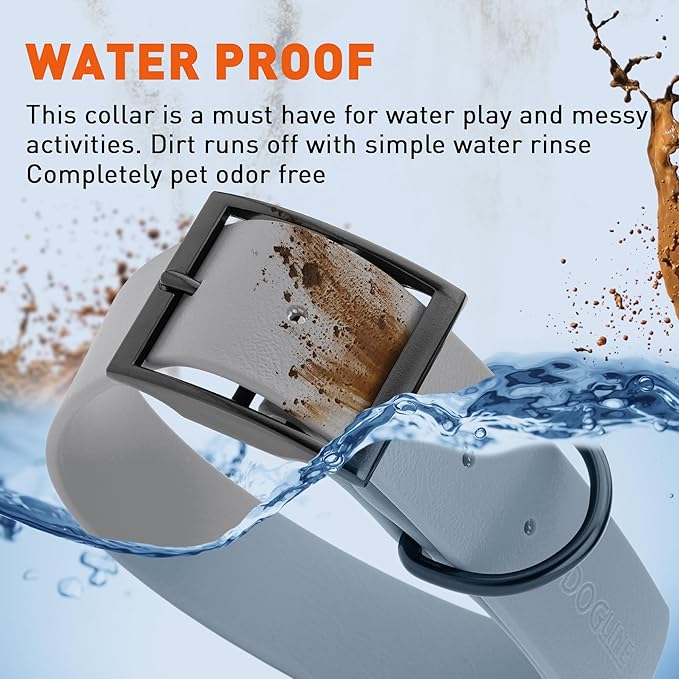 - Free Your Dog to romp in puddles and retrieve from lakes with the Dogline Biothane Waterproof Dog Collar. This water-repellent collar stays dry and odor-free, without shrinking or losing flexibility.