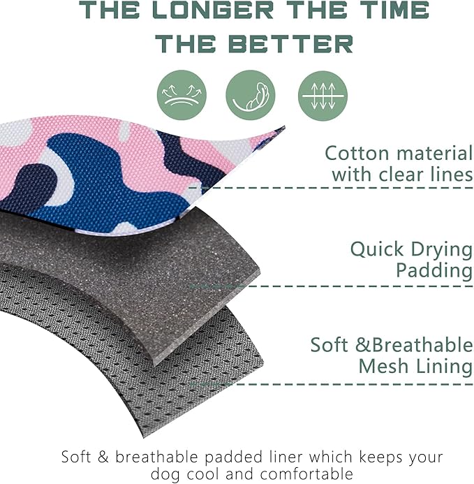 - ๐พDUARABLE & BREATHABLE MATERIAL: All Day Comfort.๐พ The heavy-duty vest made of soft cotton fabric with clear texture for the beautiful appearence. Extra durability and wear-ability, suitable for all field use. The soft padding can protect your dog's skin, while the breathable air mesh keeps your dog ventilated and comfortable. We will protect the comfort and health of the dog together with you.