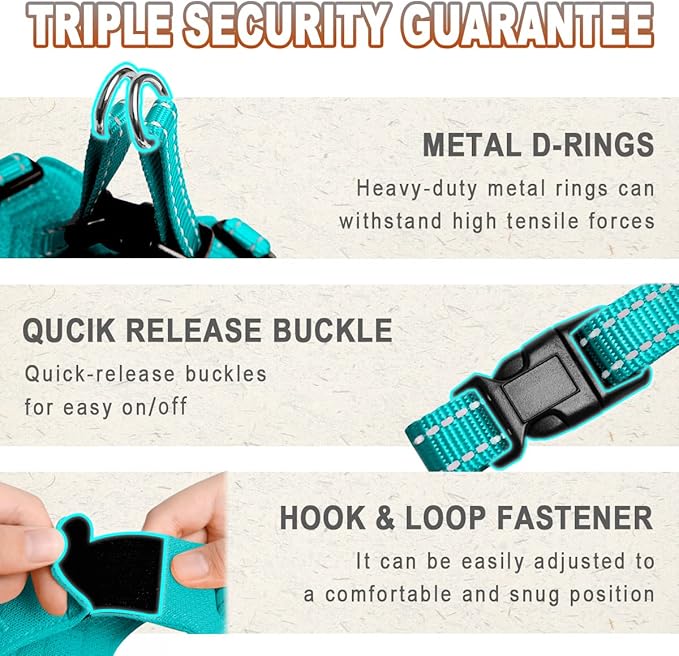 - Safety Guarantee :3 layers of security, the Hook and loop panel on the back works with a buckle and two D rings to keep your pet secure. 3M Reflective ensure him is highly visible and safe at night.