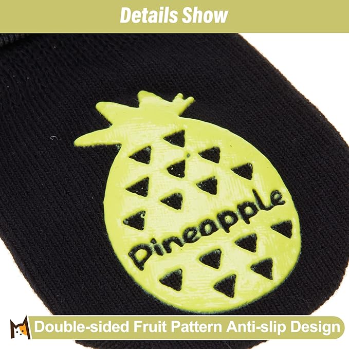- Durable Material: Made of elastic and comfortable material, which keeps your dog safe and relaxed. The soft and breathable fabric makes these socks protect the dogโs paws from being burned in the hot summer and prevent dog claws from stones and glass. Cute fruit pattern even makes your dog look charming.