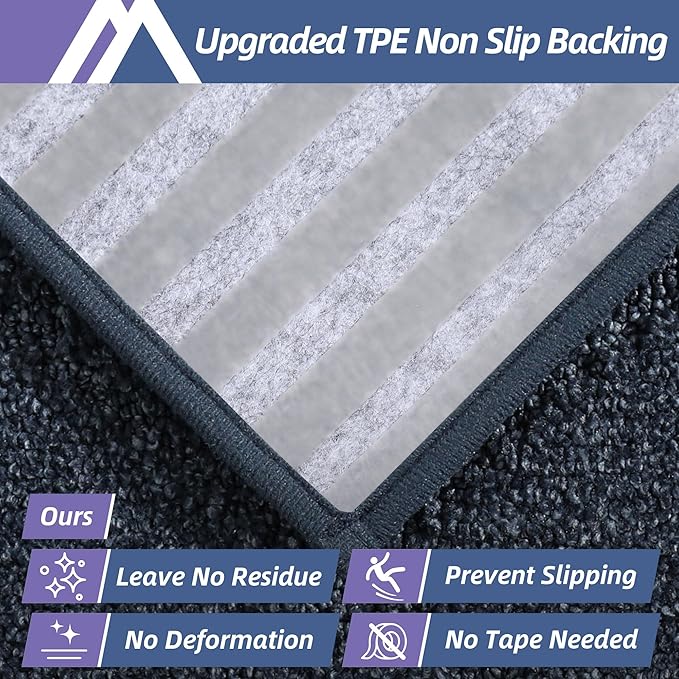- NON-SLIP STAIR RUG: Multi-purpose Stair mats to use the TPE Non-Skid backing on dry floor, helping it to stay in place on your floor, it won't slip or scuff floors. Low profile design so doors won't get stuck.Perfect for homes with pets (dogs or cats) or kids.