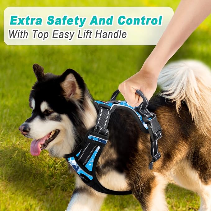 BARKBAY No Pull Dog Harness Large Step in Reflective Dog Harness with Front Clip and Easy Control Handle for Walking Training Running(Blue camo,M)