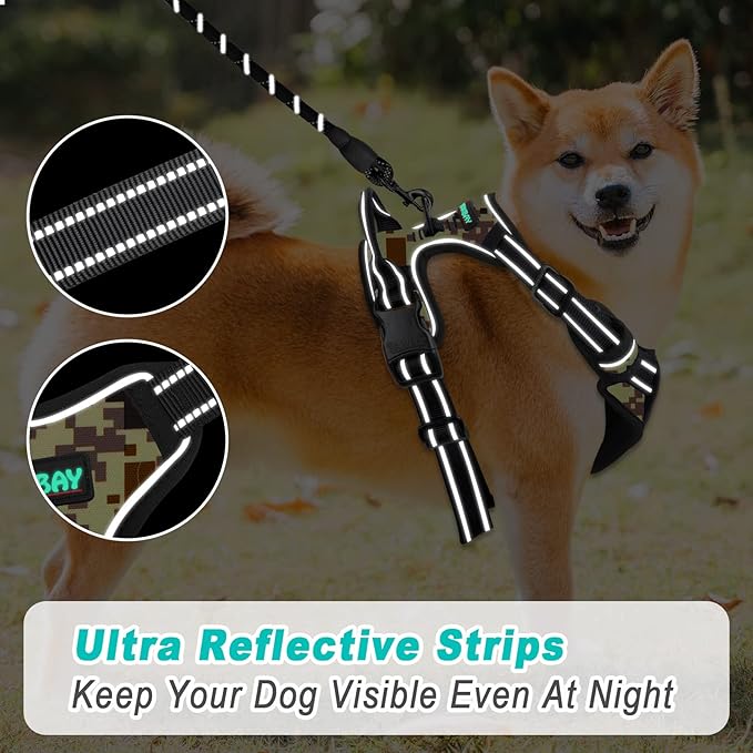 BARKBAY No Pull Dog Harness Large Step in Reflective Dog Harness with Front Clip and Easy Control Handle for Walking Training Running(Desert camo,L)