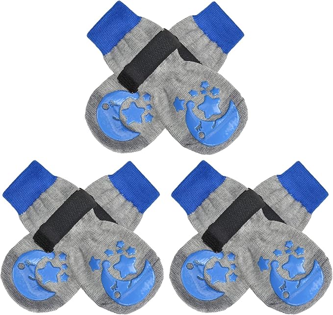 - Non-Skid: For hardwood floor, if your baby has problems who was splaying and keeps slipping on your wooden floors with back legs, we suggest you would buy these the soles which have anti-slip adhesive, which can provide extra traction. Besides, wearing a non skid sock prevents dogs from licking and irritating the wound further aid in healing foot wounds.