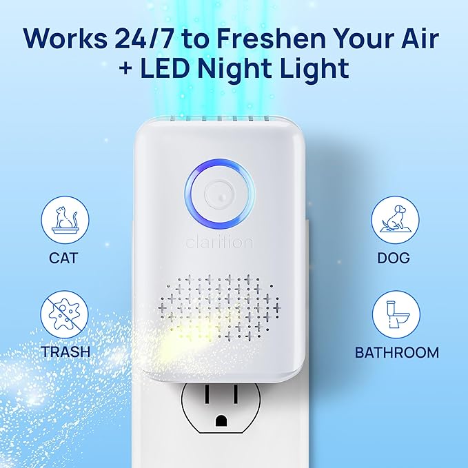 - Powerful Cat and Dog Odor Deodorizer: Clarifion ODRx utilizes UV-C light technology to effectively neutralize persistent cat pee and dog urine odors, keeping your home smelling fresh and inviting.