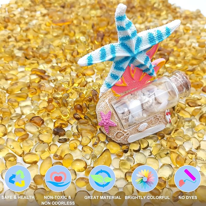 - Features: The glass gemstone is like river gravels, no dye or other methods of artificial coloring is used, never faded. Smooth edges no harm to animals and plants, you can rest assured that using. NB the glass pebbles are 0.93LB Heavy Enough BUT SMALL BAG