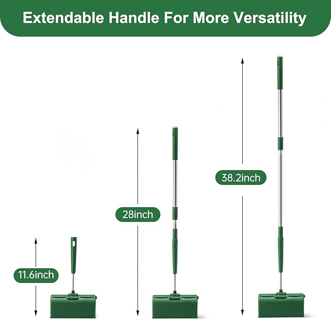 - FEDICELLY FLOOR LINT ROLLER WITH EXTENDABLE HANDLE: Giant lint roller comes with extendable handle from 18.3-28.7 inch long for far reach. This retractable long handle can be adjusted to any suitable sizes as you need. You can use sticky floor roller standing up to clean hair from floor carpets, or you can easily reach under the sofa or bed to clean any dog & cat hair, dust, dirt.