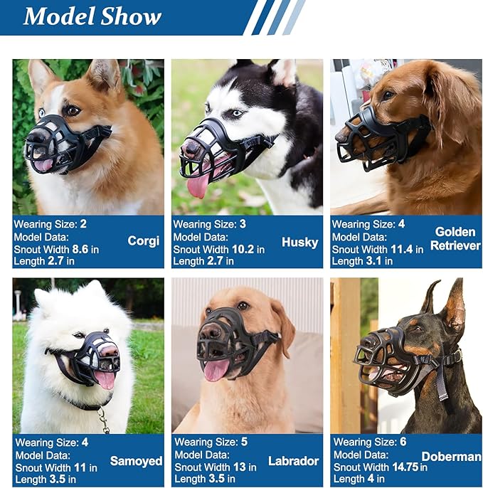 - SAFETY BASKET MUZZLE: Basket dog mouth cover design gives all-around snout protection, prevents biting, chewing, scavenging, and perfectly solve the problem that traditional muzzle canโt let dogs drink and being feed. Well used for safe public socialization, safe handling during vet visits, grooming or dog traveling