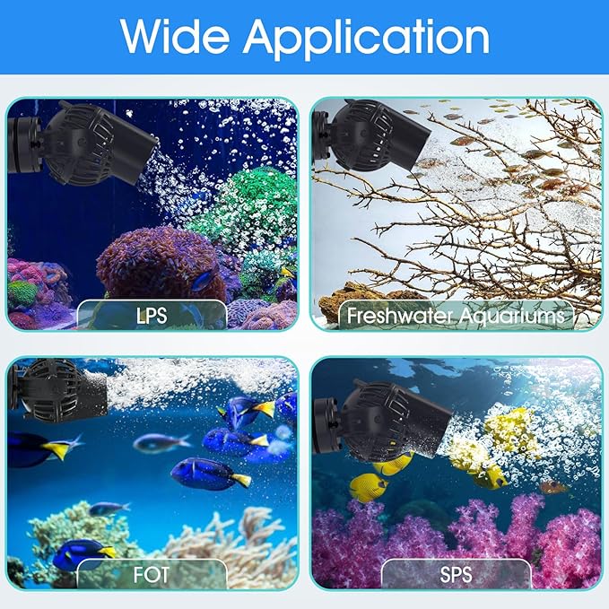 - 【Aquarium Water Circulation】This wave maker simulates the natural flow of river or ocean, creating water movement for fish to swim in and a healthy living environment for your aquarium pets; It allows the tall plants to move fluidly, giving the aquarium a more natusral look; And agitates the top water to increase the dissolved oxygen for fish, corals or plants to thrive