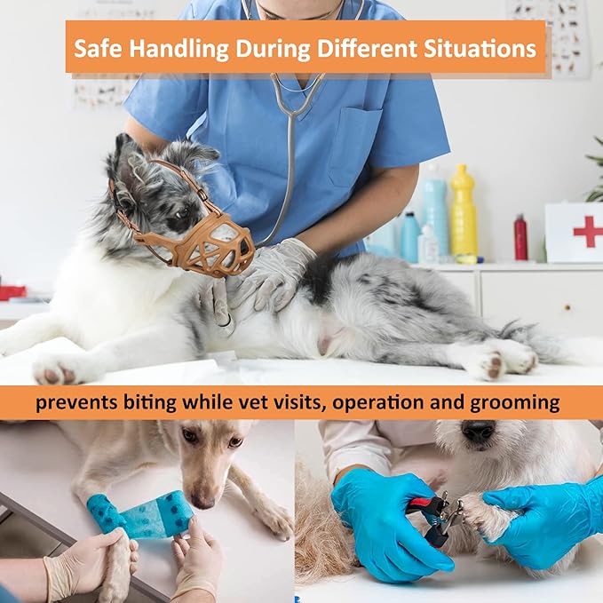 BARKLESS Dog Muzzle, Basket Muzzle for Biting, Chewing and Scavenging, Humane Cage Mouth Cover, Perfect for Grooming and Training Small, Medium, Large Aggressive Reactive Dogs (M, Brown)