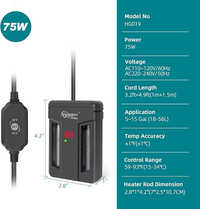 - SMALL NOT TAKE UP SPACE: hygger 75W/150W heater can be installed horizontally or vertically, also for saltwater & freshwater, and can be used in various small turtle and fish tanks, which can fully meet your needs. Note: Do not put the heater in the sand.Please make sure that the water surface is at least 2 inches above the heater