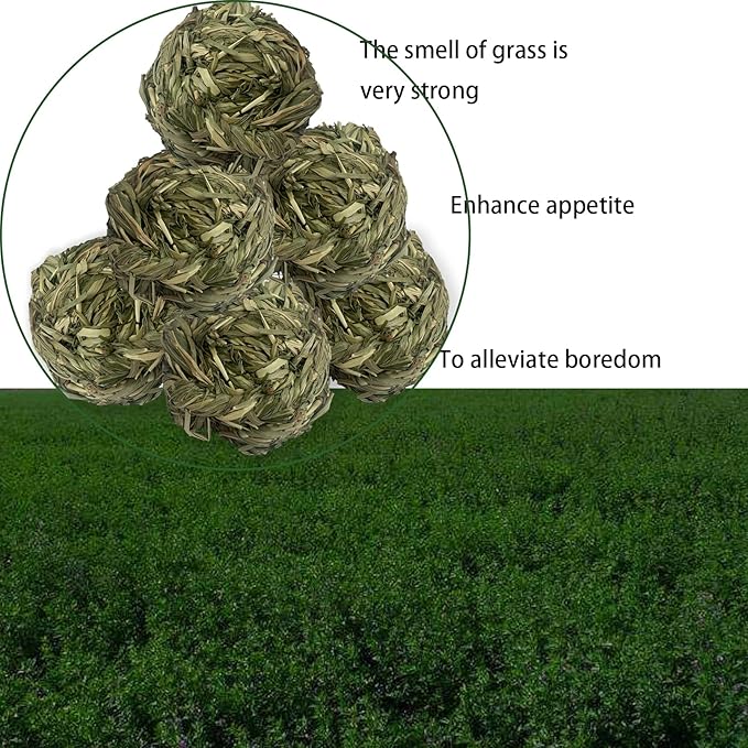 - Natural Material:Timothy Grass balls are made of 100% natural Timothy hay, high fiber, no additives, non-toxic and harmless. Carefully woven and free of any other chemicals or man-made fibers, they make ideal, safe toys